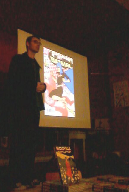 My only uneasiness or ambivalence about the event had to do with the category it occupied. I know I'd have felt more at home—felt more like a researcher doing his work and less like a fan appreciating things I already liked—if the cartoonists had more often presented ideas, arguments, and detailed accounts of their process. It's enjoyable to have a cartoonist reading his or her strips to you, but that sort of presentation doesn't usually provoke much conversation. Given the incredible collection of talent at the festival, it seems a shame that there weren't more challenging ideas about the direction of comics, or the possibilities of the medium, or the problems of cartooning, et cetera, circulating during and after the presentations. This strikes me as a sort of missed opportunity: why not have a gathering like this work as a think tank, as well as a celebration of the medium? Or maybe those impulses aren't entirely compatible.